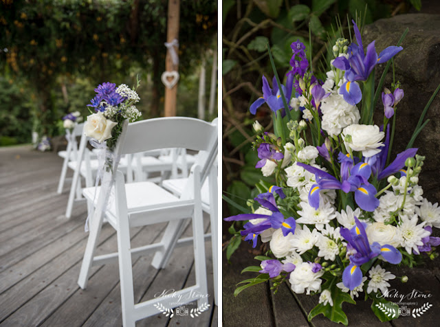 Despite the dismal weather forecast for Jenny and Dirk's wedding day, with pouring rain predicted during their wedding ceremony, I'm sure that all the happiness and positivity radiating from this lovely couple kept the bad weather away. Everything was perfect with flowers in abundance, and the highlight of the touching ceremony conducted by celebrant Merlin Coughlan was the delivery of the rings by Luna the beautiful barn owl, who glided in from the surrounding forest to the amazement and gasps of delight of the wedding guests. And the weather continued to cooperate for the location photos around the gorgeous lakeside gardens, and the rain only arrived once the guests were all seated happily in the beautiful reception room. A truly lovely day in a lovely location.